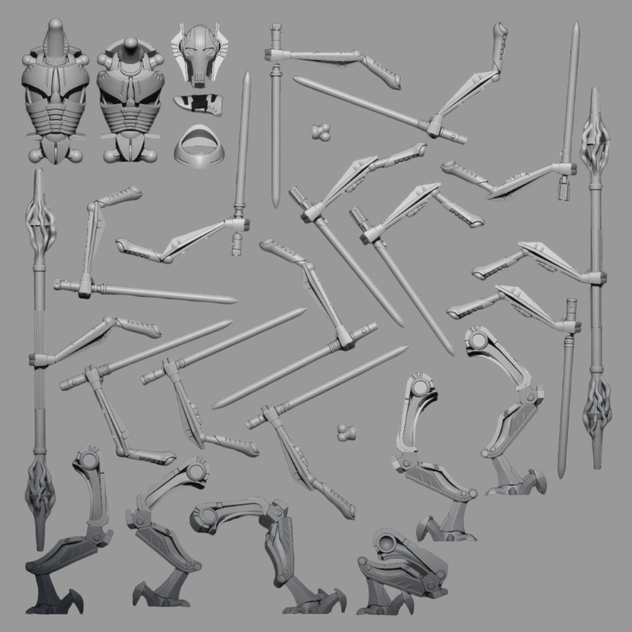 Inspired by a legendary cyborg tactician from a galaxy far, far away, the Cyber-Warlord Commander is a fearsome four-armed droid sculpted for dominance. With flowing mechanical limbs, armored plating, and four elegant energy blades, this figure makes the perfect villain, warboss, or display centerpiece for sci-fi enthusiasts and tabletop generals alike.